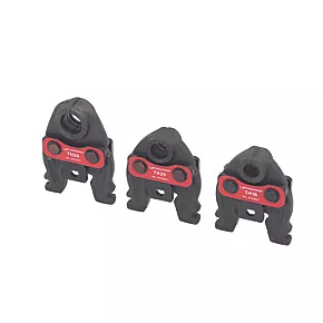 Electro-hydraulic battery-powered press machine for fittings up to 110mm. Supplied with TH-profile jaws in 16, 20 and 26mm sizes. Features 270° press head rotation, emergency stop and low battery indicator.